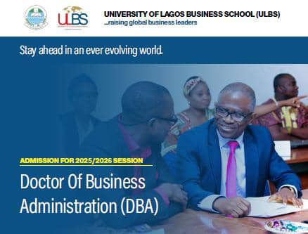 The University of Lagos Business School (ULBS) hereby invites qualified candidates to apply for the Doctor of Business Administration (DBA) programme, for the 2025/2026 Academic Session.
